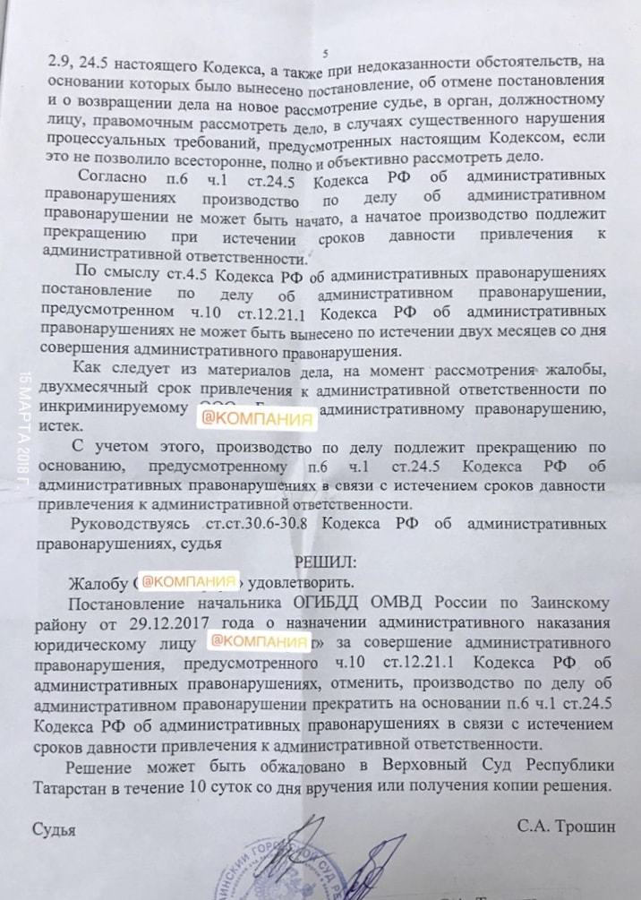 Хотите увидеть больше решений по ст. 12.27 КоАП? Заполните форму заявки и мы Вам их покажем!